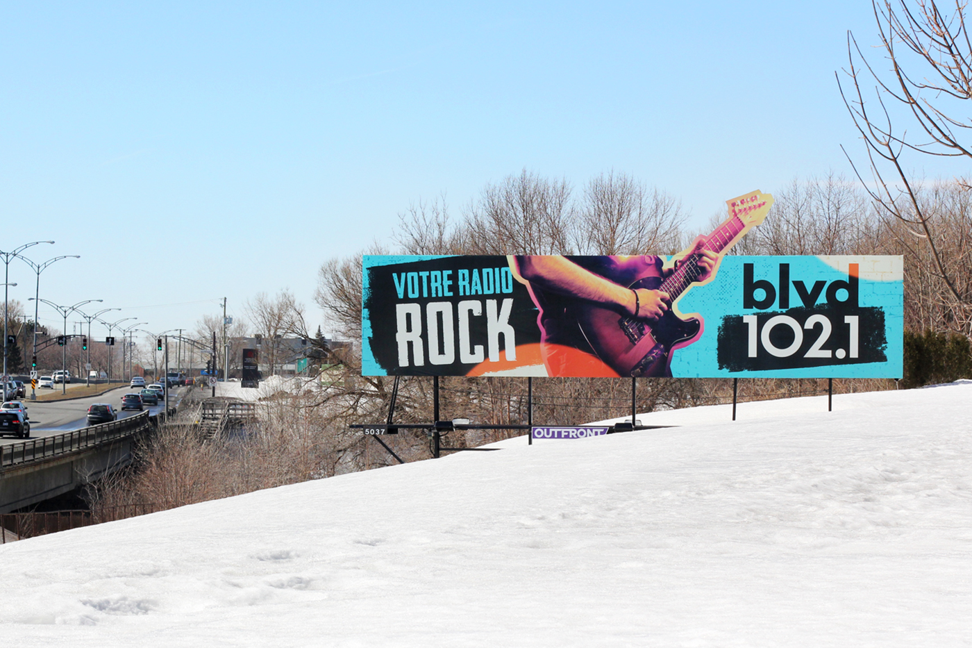 Campagne d'affichage pour BLVD 102,1 ayant pour but de mettre de l'avant leur virage vers la radio de musique rock à Québec.