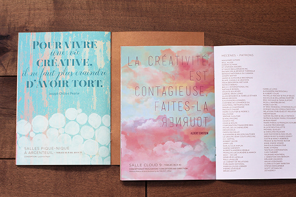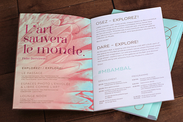 Création des visuels pour représenter les thèmes de chacune des salles du Bal 2015 au Musée des Beaux-Arts de Montréal. Mise en page de l'intérieur de la programmation. La couverture de la programmation et l'identité visuelle de l'événement fût réalisées par Paprika (gagnant d'un prix Grafika 2016 pour leur pièce promotionnelle)