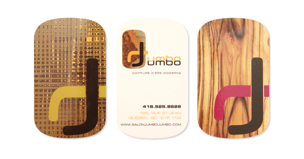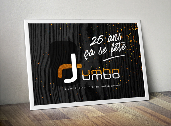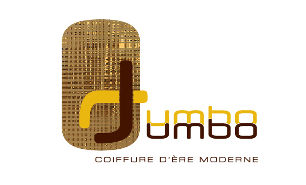 Création de l'identité visuelle du Salon de coiffure Jumbo Jumbo Logo, Papeterie, Site Web, Enseigne et quelques photos du salon que l'on retour sur le site.